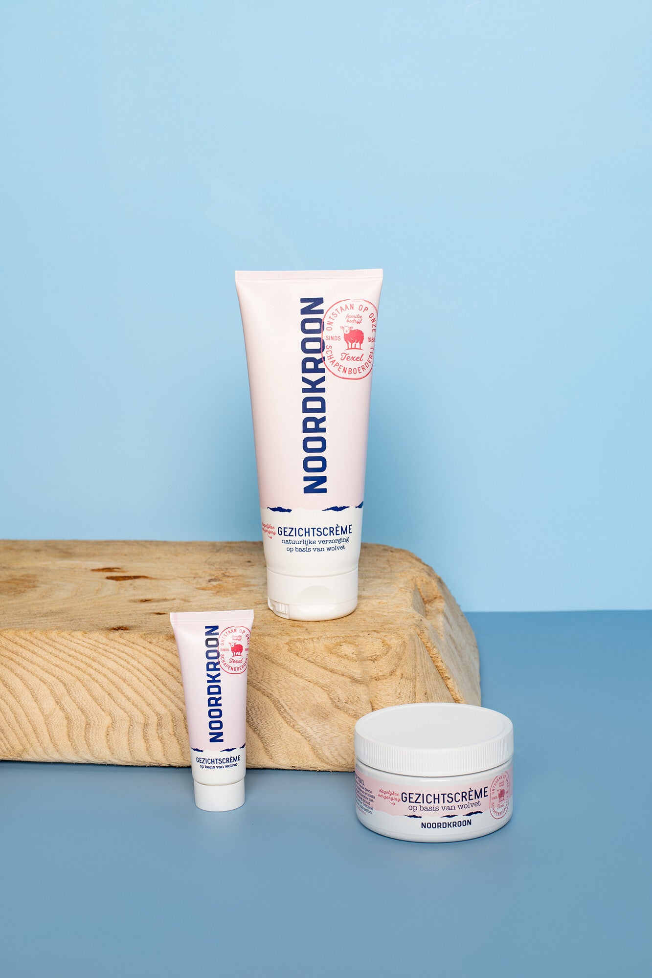 Handcrème van de firma Noordkroon, met zo natuurlijk mogelijke ingrediënten, gebaseerd op wolvet.