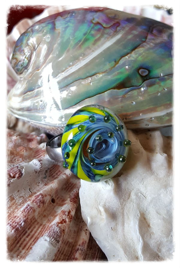 Glazen Wisseltop voor ring / hanger - 'Lemon Blue'