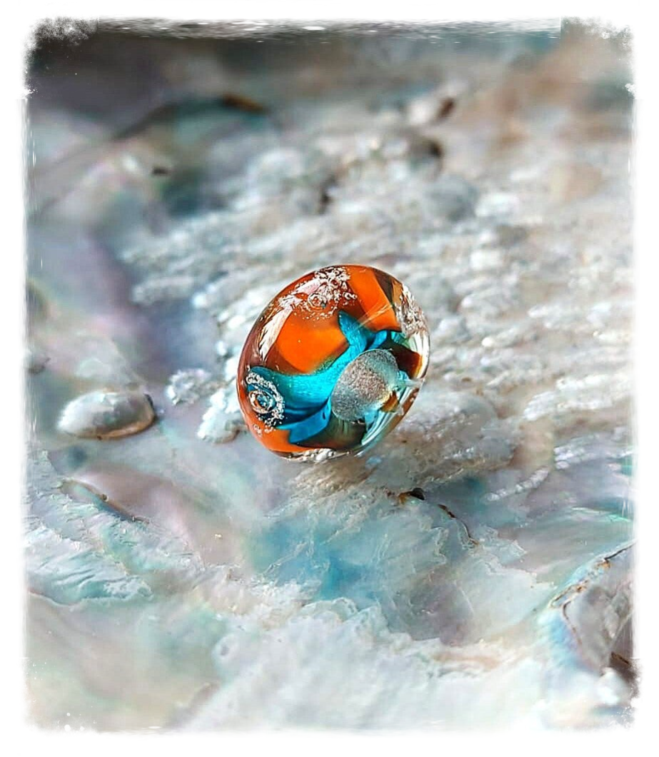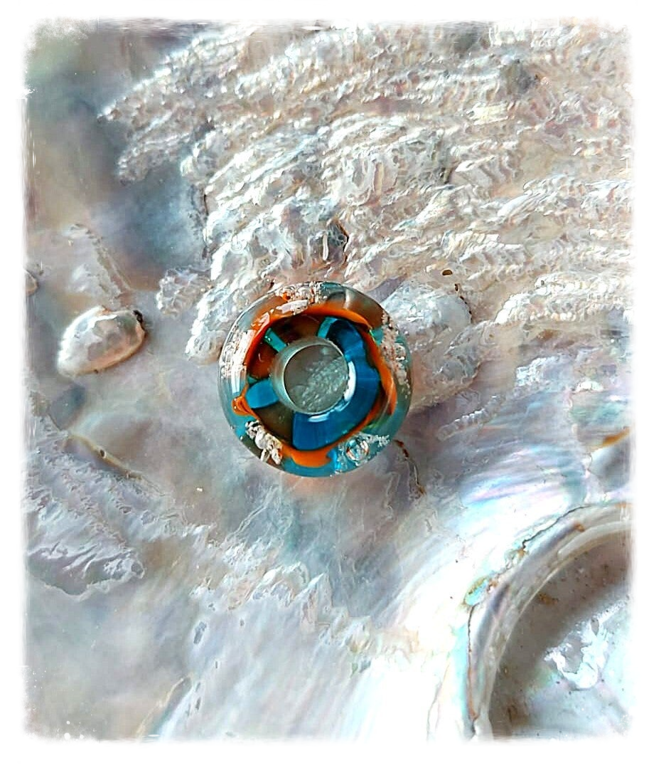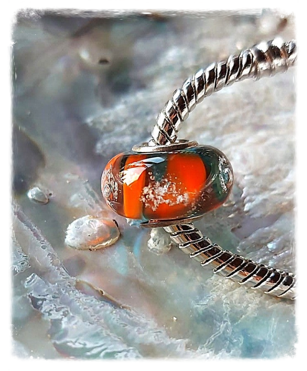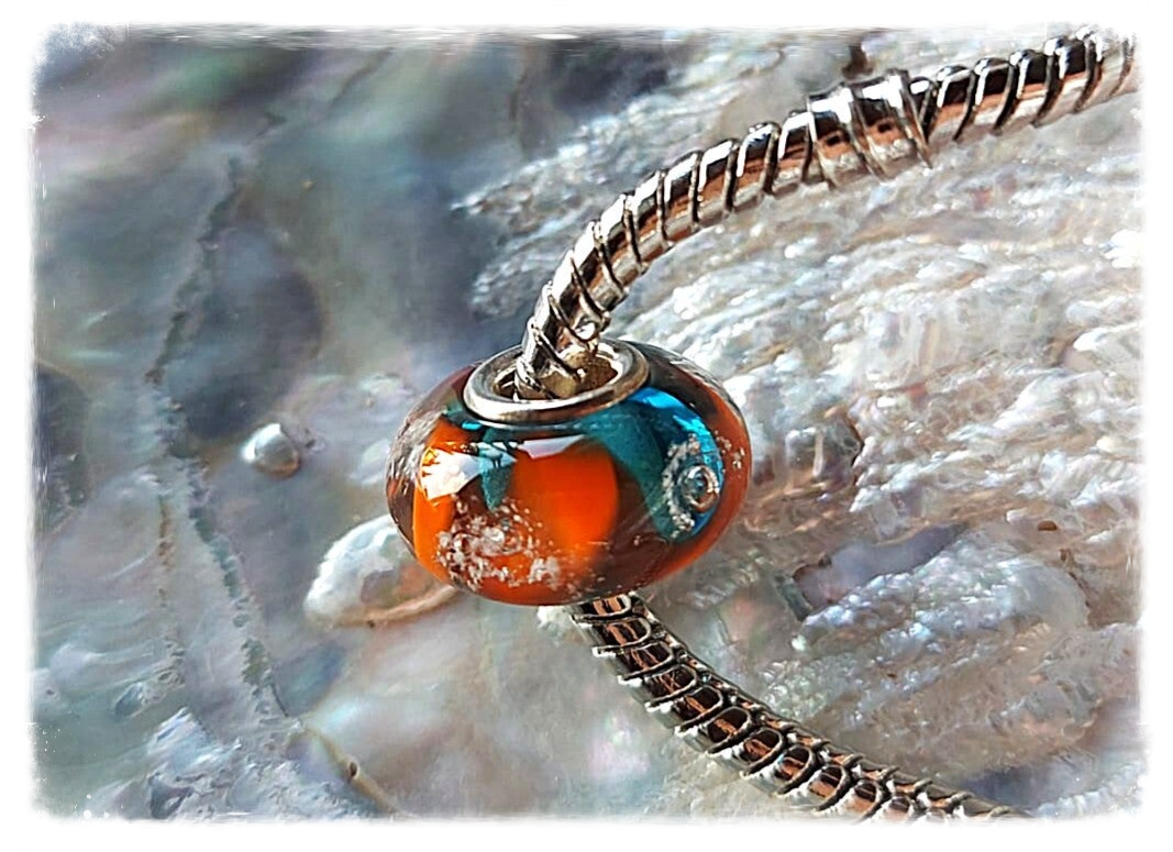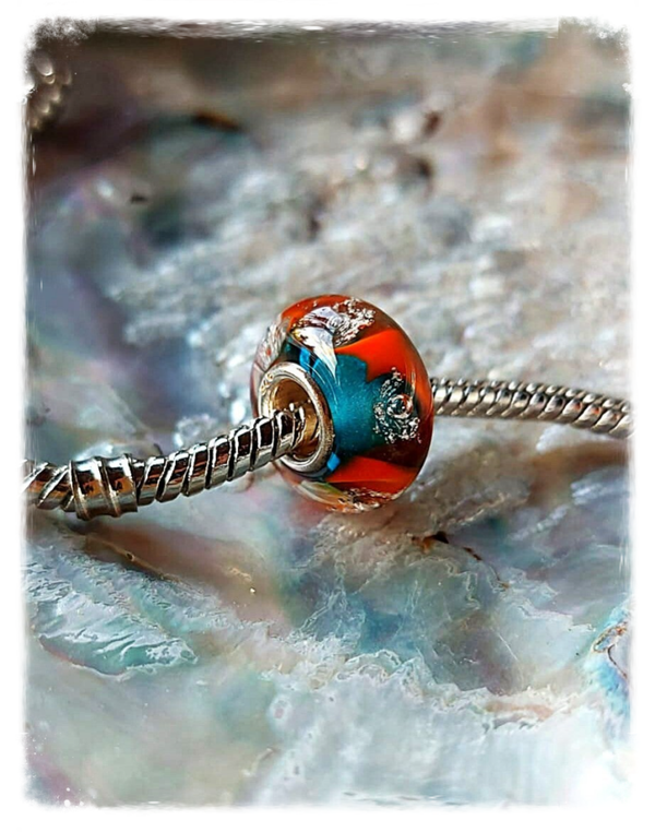 Herinneringskraal / askraal / kraal met crematie as: 'Celebrate life' - turquoise oranje - Past o.a op Pandora en Trollbeads